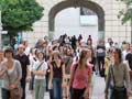 die Teilnehmer von Tourguides durch den öffentlichen Raum geleitet.