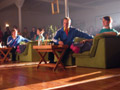 die Position des Mannes im rechten Bild ein und singt live ein Lied,